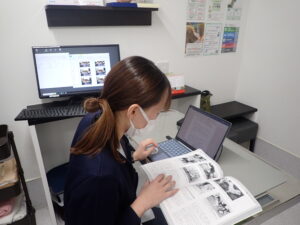 動物リハビリテーションを専門に行っている外部講師に勧められた書籍での勉強やリハビリテーション専門施設での外部研修も行っています。