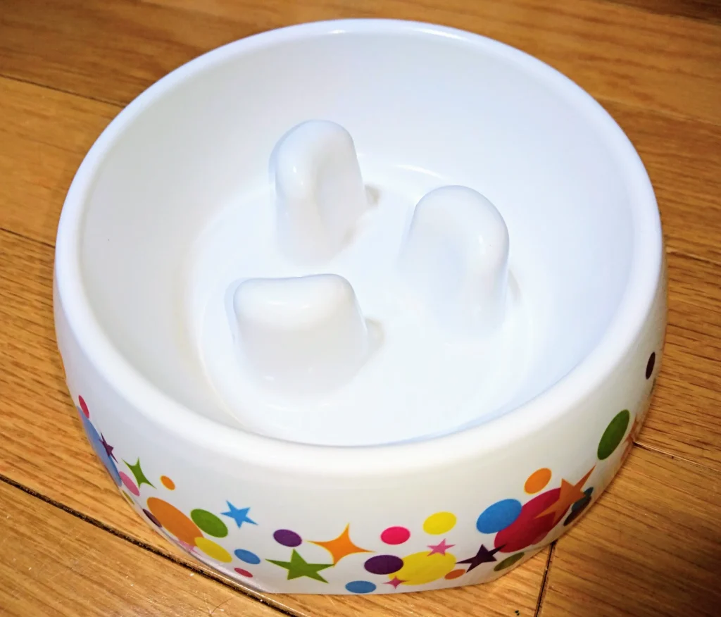 食事をがつがつと一息に食べてしまう場合は食べにくい器の形状に替えてみるのよいとでしょう。