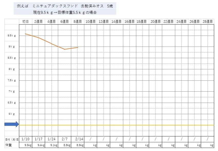 1か月に体重の5%程度の減量を目標にすると体に負担なくすすめることができます。