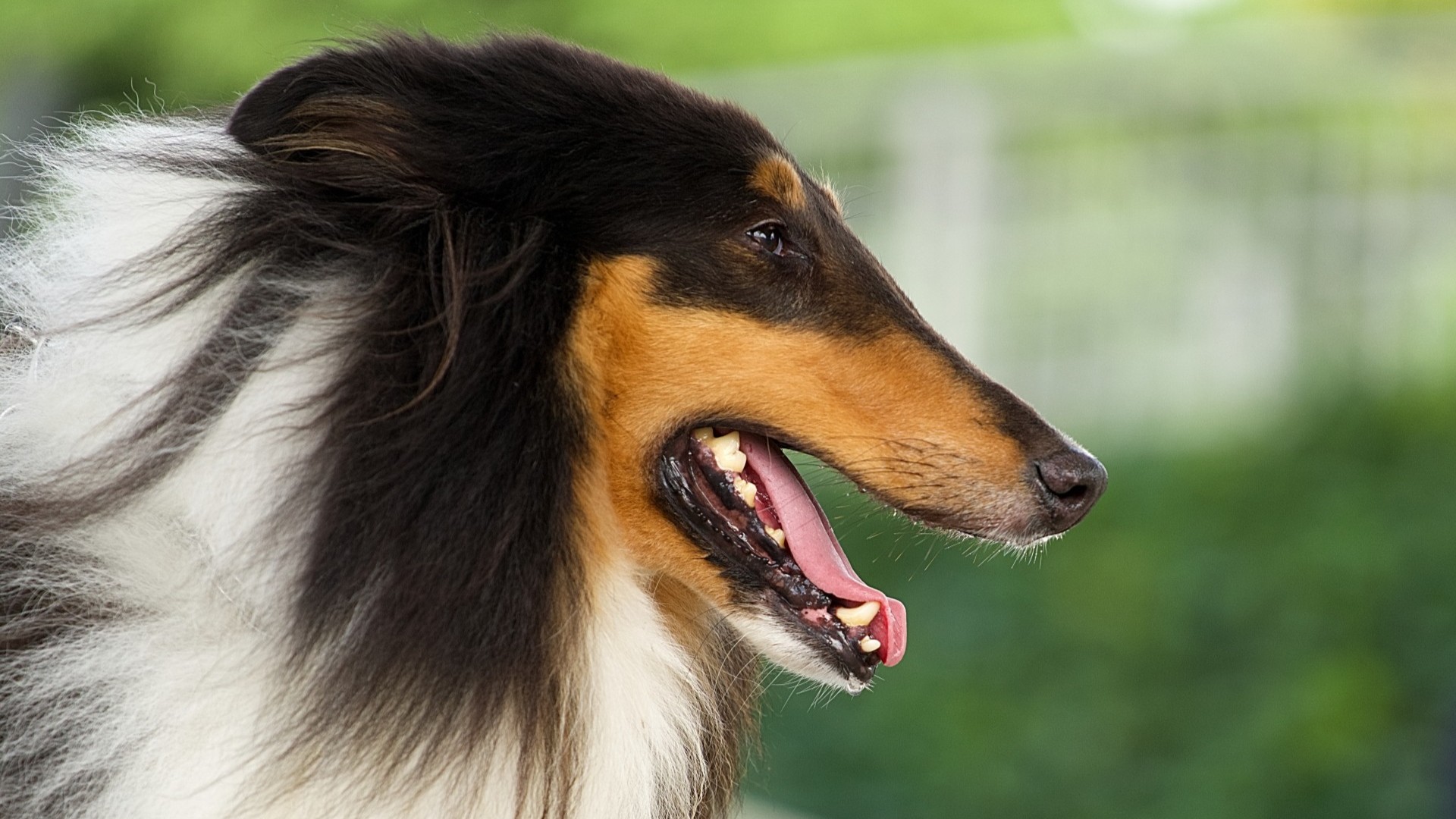体格はもちろんのこと、ラフコリーにはストップがなくおでこからスッと伸びたマズルをしています。