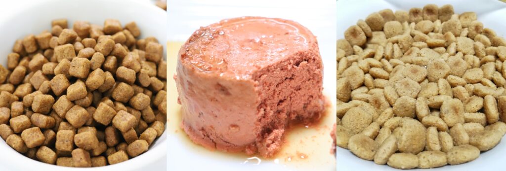 また、ドライフードとウェットフードを併用する場合は、同じシリーズや同じ目的の製品で統一するのが望ましいです。特にウェットフードの割合が多いと摂取水分量が増え、便が柔らかくなりやすいことがあるため、その点も考慮しながら調整しましょう。