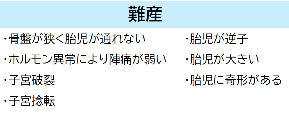 難産とは人為的な介助がないと分娩ができないことをいい、難産になると母子ともに命が危険になる可能性があります。