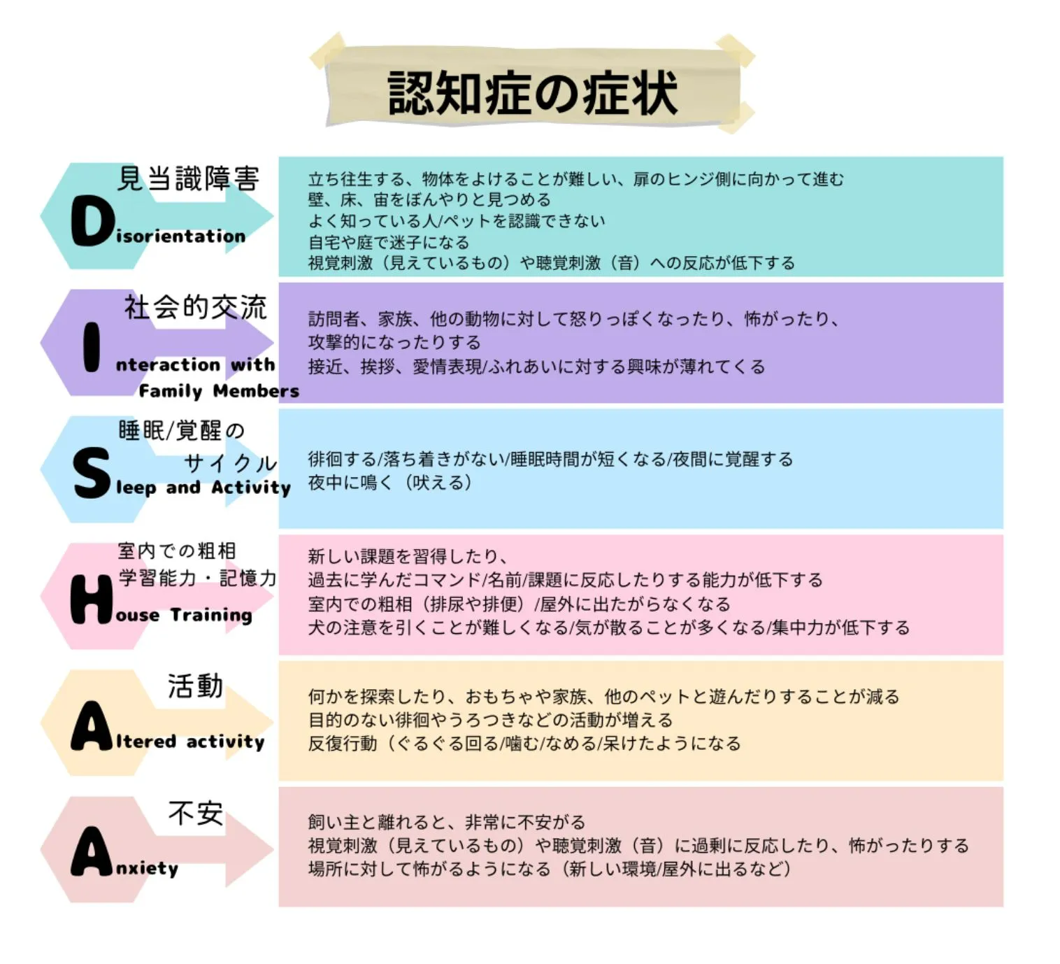 • ・新しい課題を学習したり、過去に学んだコマンド/名前/課題に反応したりする能力が低下する