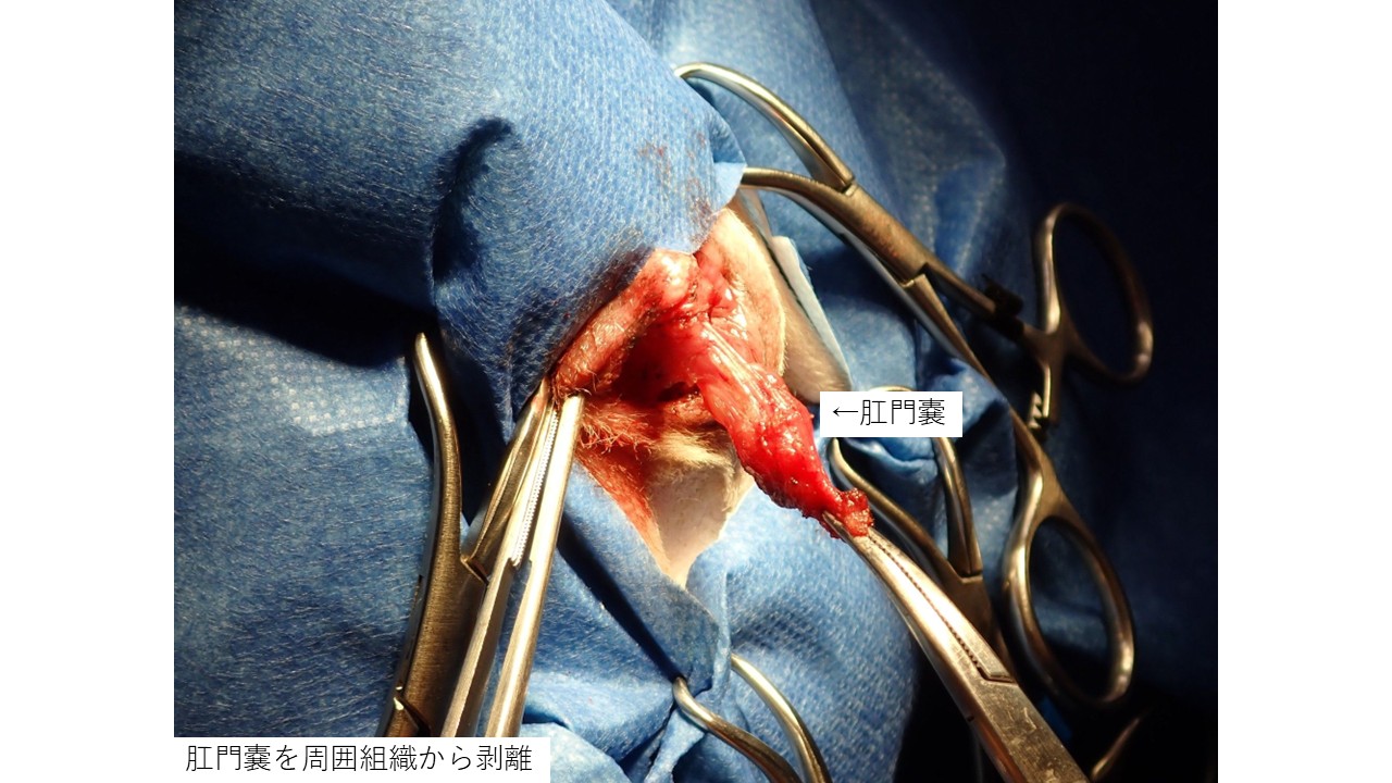 3.切開したところから周囲組織と肛門嚢を剥離。